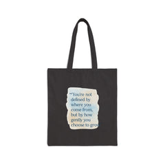Canvas Tote Bag — “You’re not defined by where you come from, but by how gently you choose to grow” Inspirational Quote